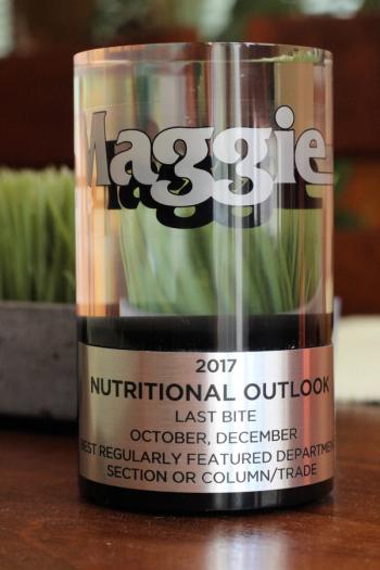 Nutritional Outlook magazine won the 2017 Western Publishing Association Maggie award for "Best Regularly Featured Department, Section, or Column" in the trade category for the magazine's Last Bite column.